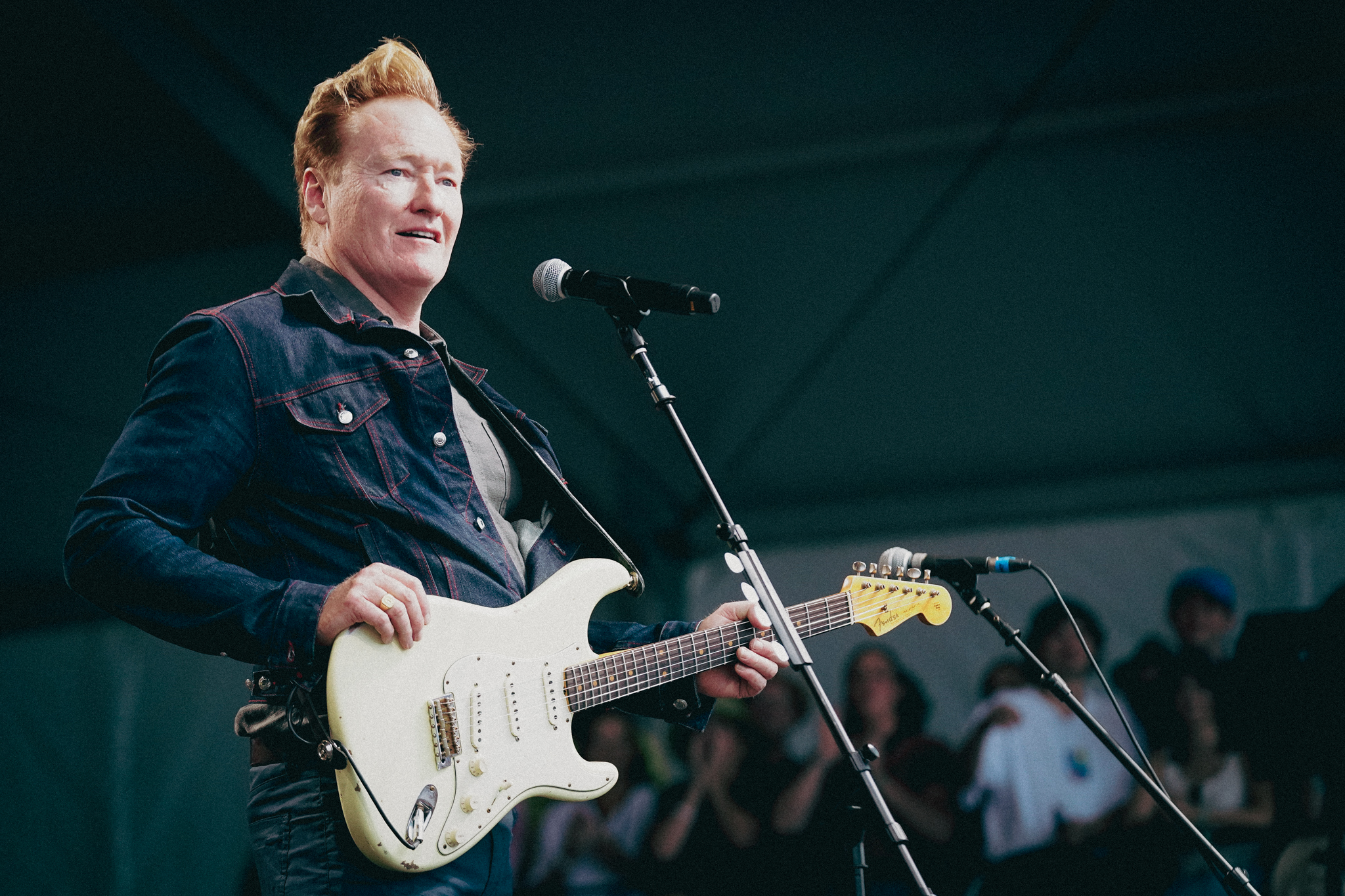 Conan O’Brien, the esteemed TV show host, writer, comedian and producer, walked out onto the Fort Stage, Fender Stratocaster in hand, and the audience went bonkers for him. He was joined by member of LA-based rock band Dawes as well as recent graduates of the Berklee School of Music who were selected to round out the backing group for this one-time project.