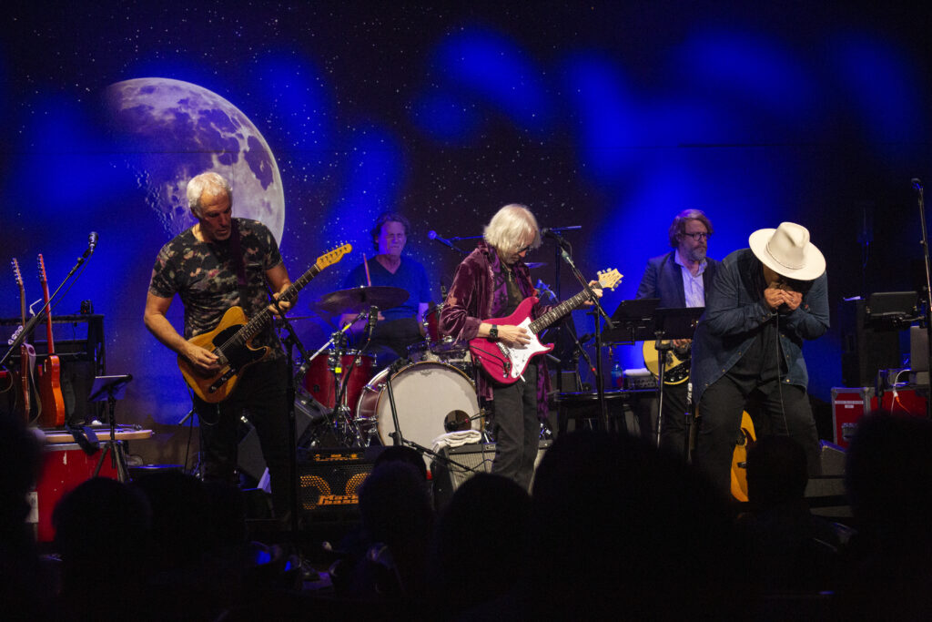 Our House is made up of a formidable group of musicians, led by guitarist Steve Postell. Steve’s expansive career includes being guitarist and musical director for David Crosby and Immediate Family, an all-star band of studio veterans. Lead guitar and lap steel was handled by Jeff Pevar, who played for years with David Crosby, Graham Nash, CSN, and Phil Lesh. Bass was held down by Eli Thompson from Father John Misty. Drums were handled by Steve DiStanislao, who not only played with Crosby but with David Gilmour as well. Half of the keyboard duties and vocals were performed by Michelle Wills. Michelle played keyboard for Crosby for many years, on several projects. The other half of the keyboard duties were handled by James Raymond, who not only collaborated with David Crosby for years but is also his son. Chris Pierce, who was hand-picked by Neil Young to open his last tour, sang and played guitar and harmonica. And finally, special guest Astrid Young sang backup during the band’s performances. She also opened both sets with a mix of originals and a Neil Young song at The Hamilton Live on August 9 and 10.
