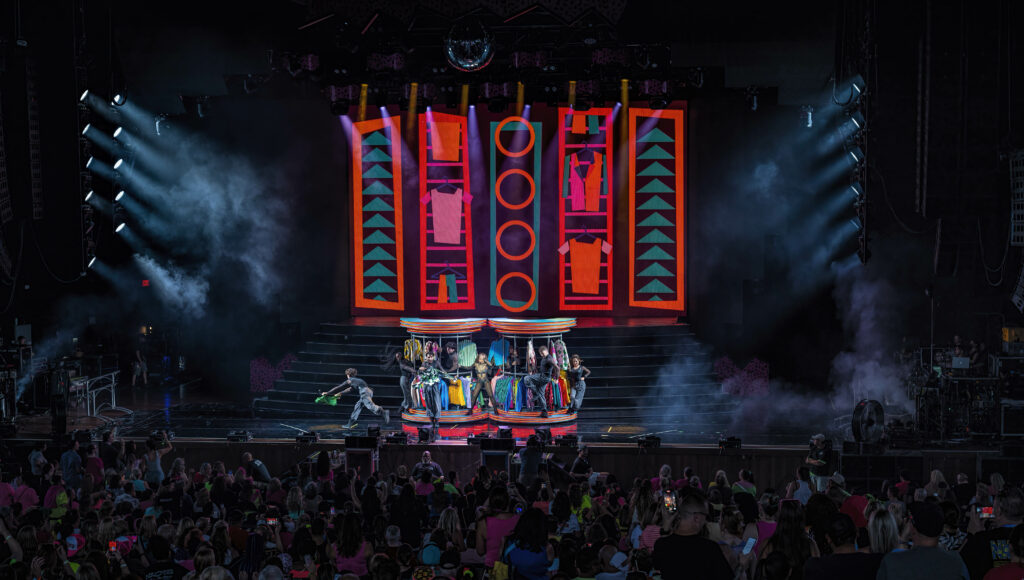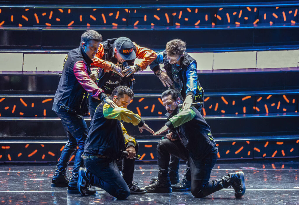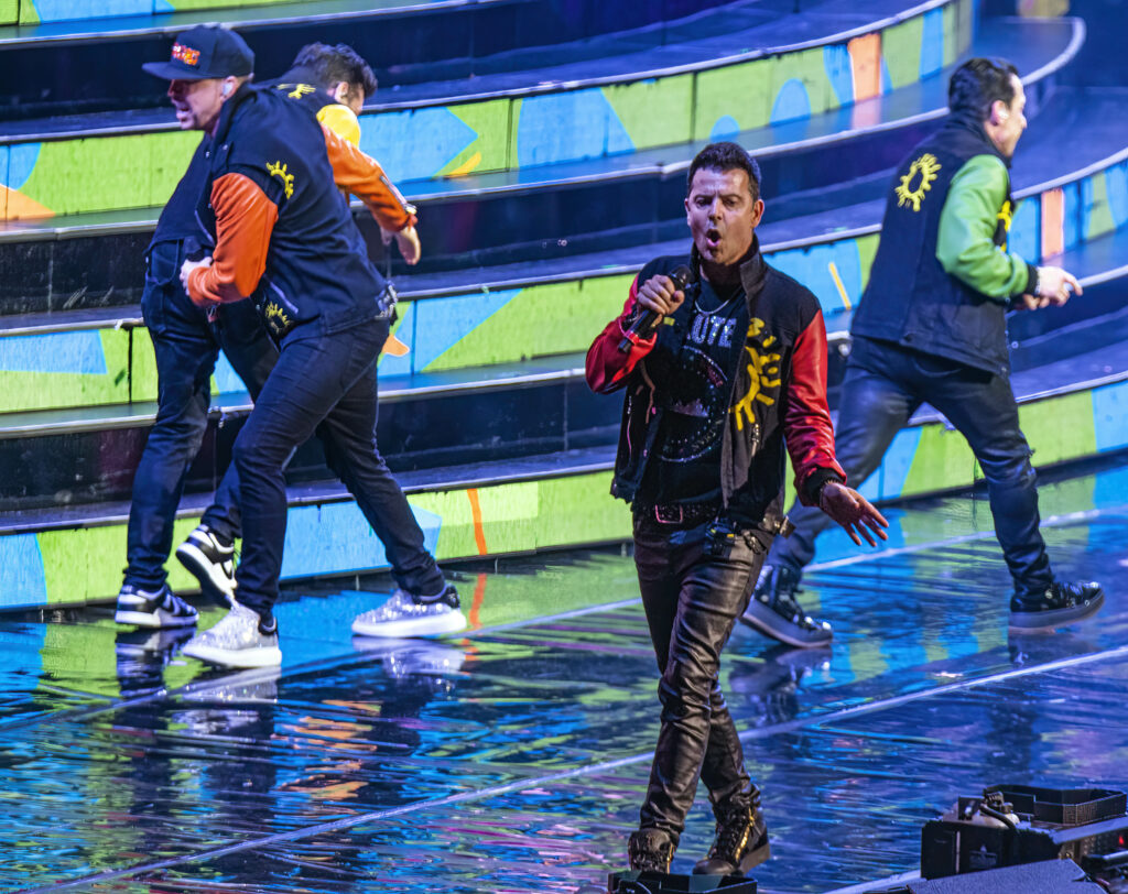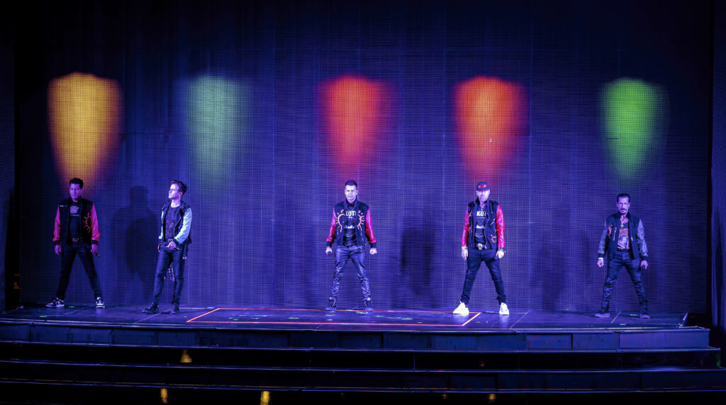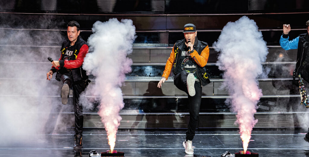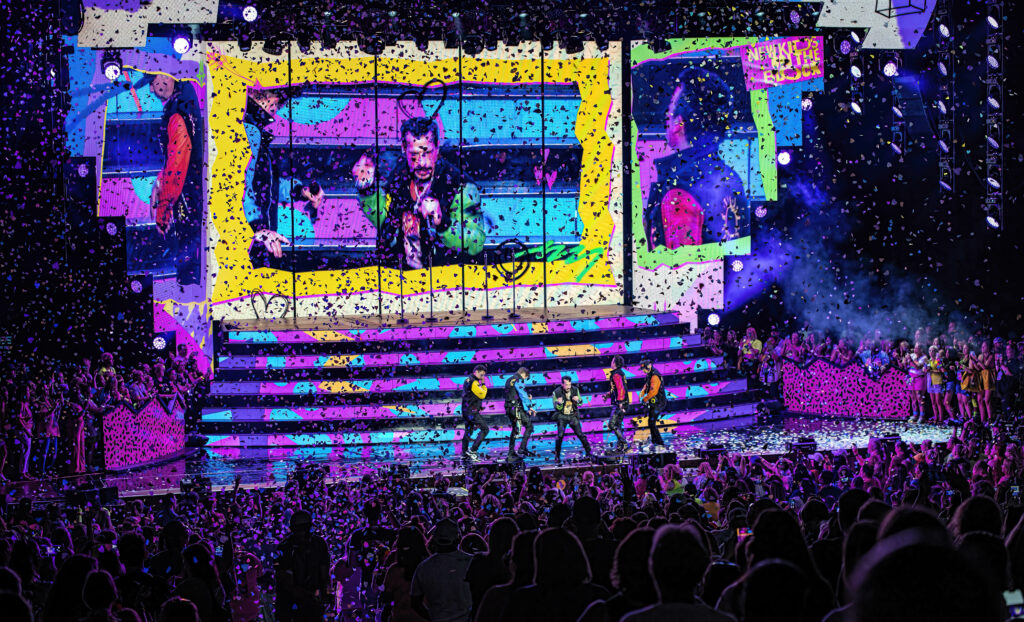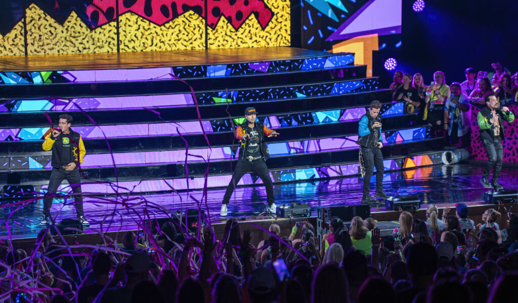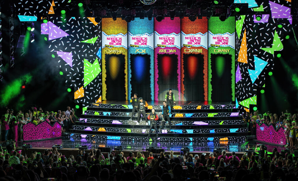 In the way only the New Kids on the Block can, silhouettes of the five boys from Boston appeared on the stage. Each member with their own color — red, yellow, blue, green, orange — danced their way to the front of the stage.