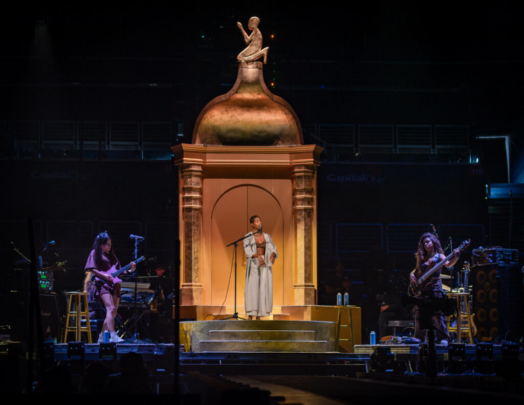 Glover’s 2013 cult classic album Because the Internet released with a prequel YouTube short film and a full screen play script for the nerds to deep dive into and read along with as they listened to the album. Bando Stone is no different, as Glover has said the album is the soundtrack for an upcoming film of the same name that currently only exists as a trailer and a few interludes at the end of songs on the album, as there is no release date set for it. At Capital One Arena on August 29, the live show added another layer to the world of Bando Stone while also celebrating the 15-year run of the artist formerly known as Childish Gambino.