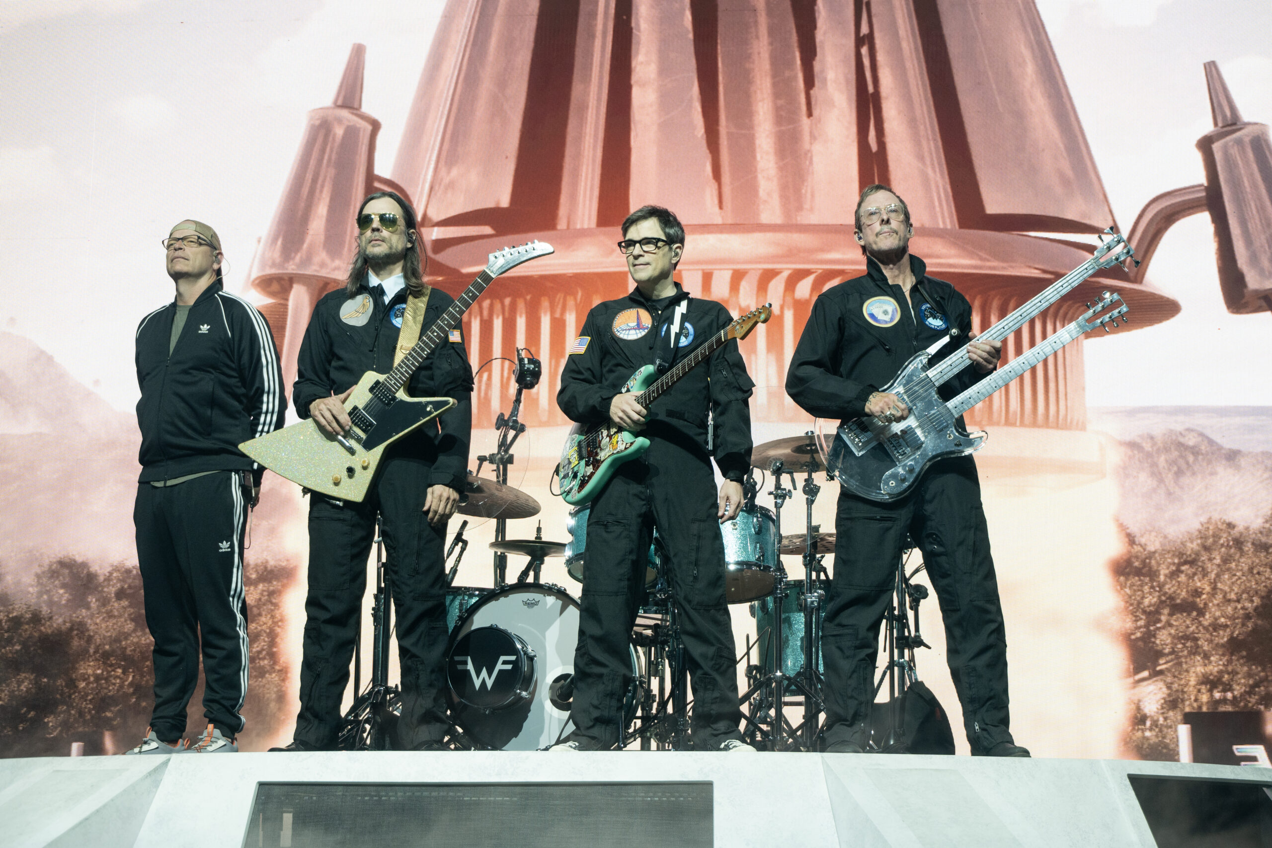 Weezer’s most recent recording project has been a series of four EPs celebrating the four seasons, and the frontman Rivers Cuomo and company nodded to the series in closing their first set with a portion of “Run, Raven, Run” from SZNZ: Autumn (2022). The audience roared its approval of the new tune, but everyone really loved the big radio hits that appeared in the first set: particularly “Hash Pipe” (2001), “Beverly Hills” (2005), and “Island in the Sun” (2001).