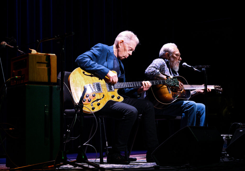At precisely 8pm, Jorma and Jack took the stage, unadorned but for two straight back chairs, a single microphone, and the tools of their trade: an Epiphone Jack Casady Signature Bass and a custom Flammang Acoustic Guitar, built by luthier David Flammang. For nearly three hours, the duo played two sets of rock and blues from across their 66-year career together.