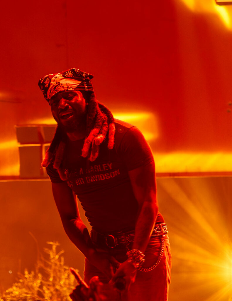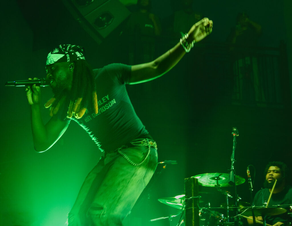 At 9:30 Club on Sept. 21, the stage was dressed like a scene in an Old West movie, with cactuses, an old tattered billboard and barrels used as table for the bottles of Jack Daniels. Shaboozey and his band slowly hit the stage one by one for the late night show, opening things up with his feature on Beyoncé’s “Spaghetti” from her country album Cowboy Carter before giving DC a shout-out and talking about how he hadn’t done a show in the DMV since probably 2016. He got into the new album right away with “Last of My Kind” before jumping backwards with the beer lovers anthem “Tall Boy” from his 2022 project Cowboys Live Forever, Outlaws Never Die. He then slowed things all the way down with “Anabelle” followed by “Why Can’t Love Be The Reason” and kept this back and forth pace from from upbeat records to ballads and slower jams all throughout the show.