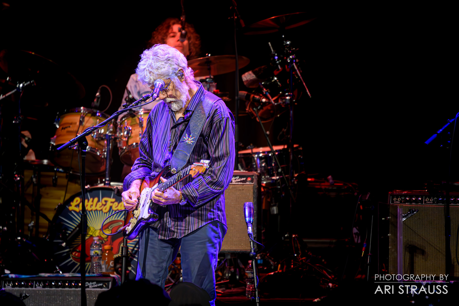 Longtime band member Fred Tackett started off with a solo introduction on trumpet and then came back with great work on guitar and mandolin. Kenny Gradney’s basslines were as tight and funky as ever, providing a solid backbone for the rhythm section alongside drummer Tony Leone who is among the most recent additions, joining the band in 2020. Tony’s energetic drumming added a fresh spark to the band’s well-established grooves, particularly during tracks like “Feats Don’t Fail Me Now” and the closing number, “Let It Roll.” Scott Sharrard, who also joined the band in 2020, proved himself a worthy successor to the late Paul Barrere, his guitar solos soaring with soulful precision while blending seamlessly with the group’s sound.