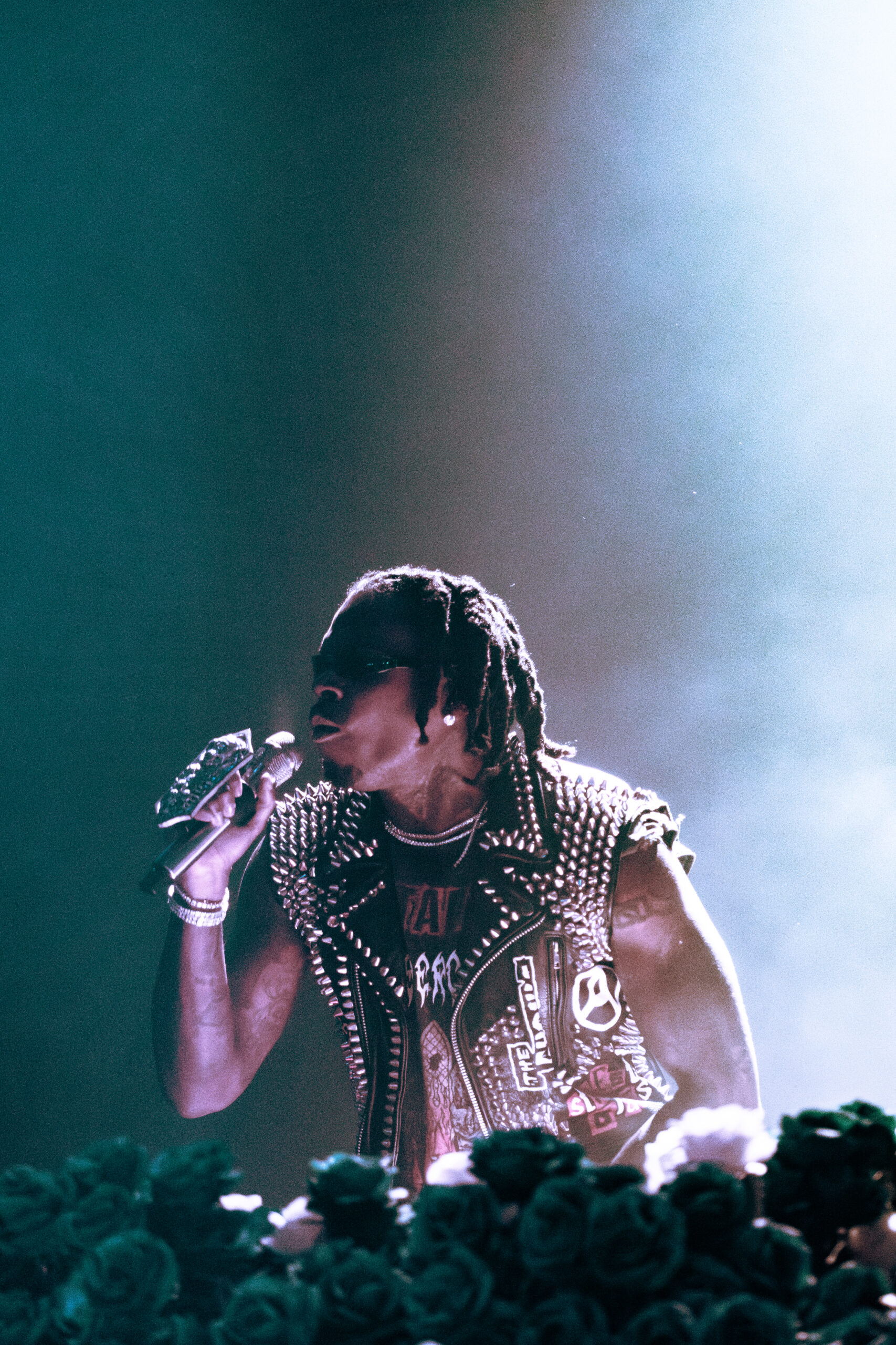 With a three-tiered stage, Gunna embraced the audience and put on a phenomenal show. From the top two levels of his stage, he was able to address the audience as a whole, while the bottom allowed him to get up close and personal with those standing on the barricade. He started with a live debut of “HIM ALL ALONG,” a song he had just released the day prior. He also, of course, played some of his most popular songs, like “Drip Too Hard,” “P Power,” and “fukumean,” which all had the entire venue moving in unison and created energy that was through the roof.