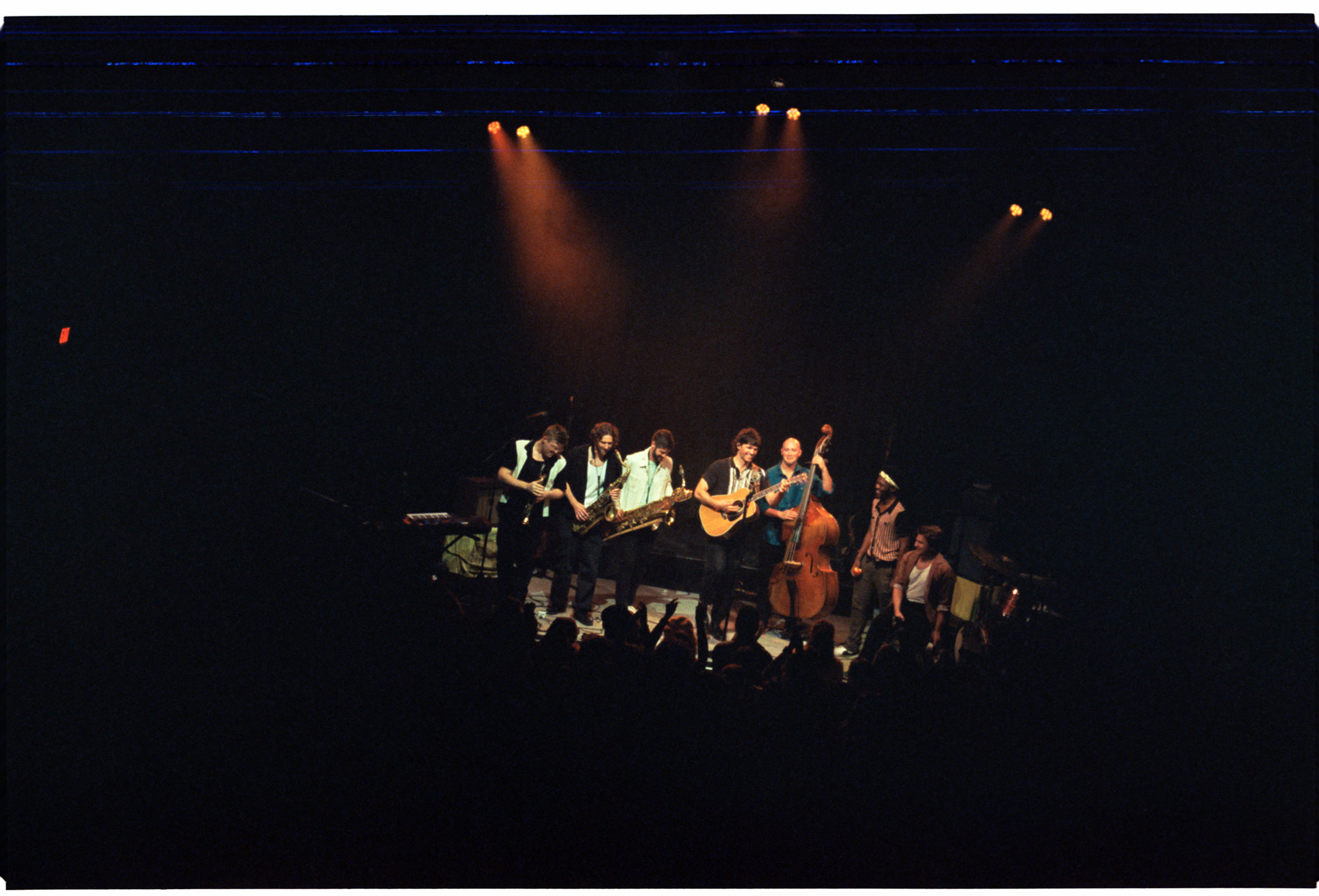 The group’s core has remained constant for much of this time. Tom Eddy is lead vocalist and guitarist. He’s joined by Mark Hunter on bass, Jarred Katz on drums, Brennan Carter on trumpet and flugelhorn, Levi Gillis on tenor sax and bass clarinet, and Evan Smith on baritone and alto sax and the flute.
