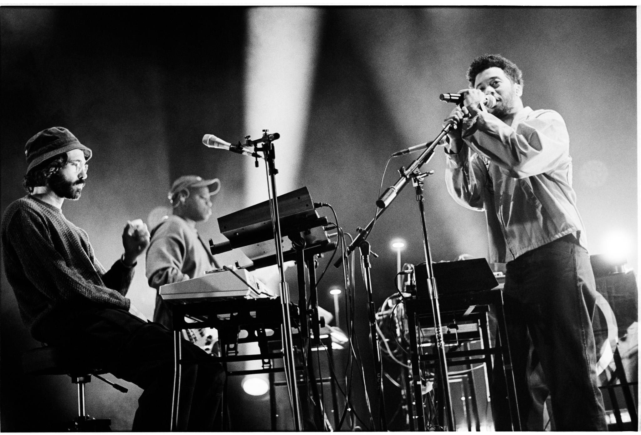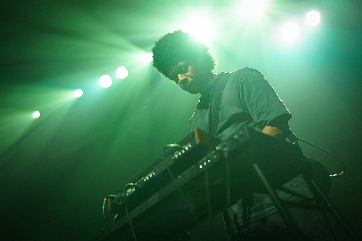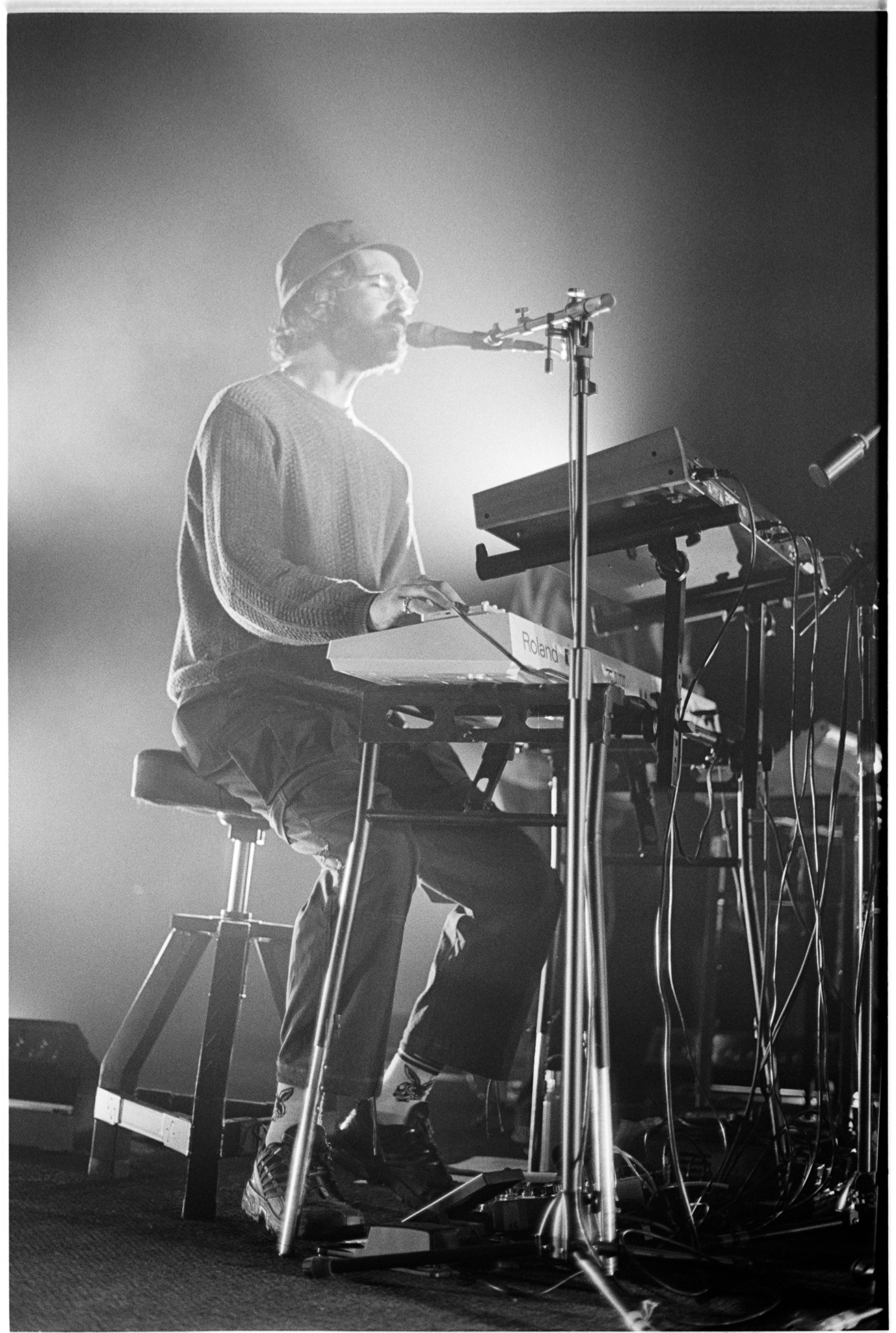 Below are home-rolled/developed/scanned 35mm black-and-white shots, along with digital color images, of Toro y Moi, Panda Bear, and opening act Nourished By Time performing at 9:30 Club on the night of Feb. 16, 2025. All photos copyright and courtesy of Casey Ryan Vock.