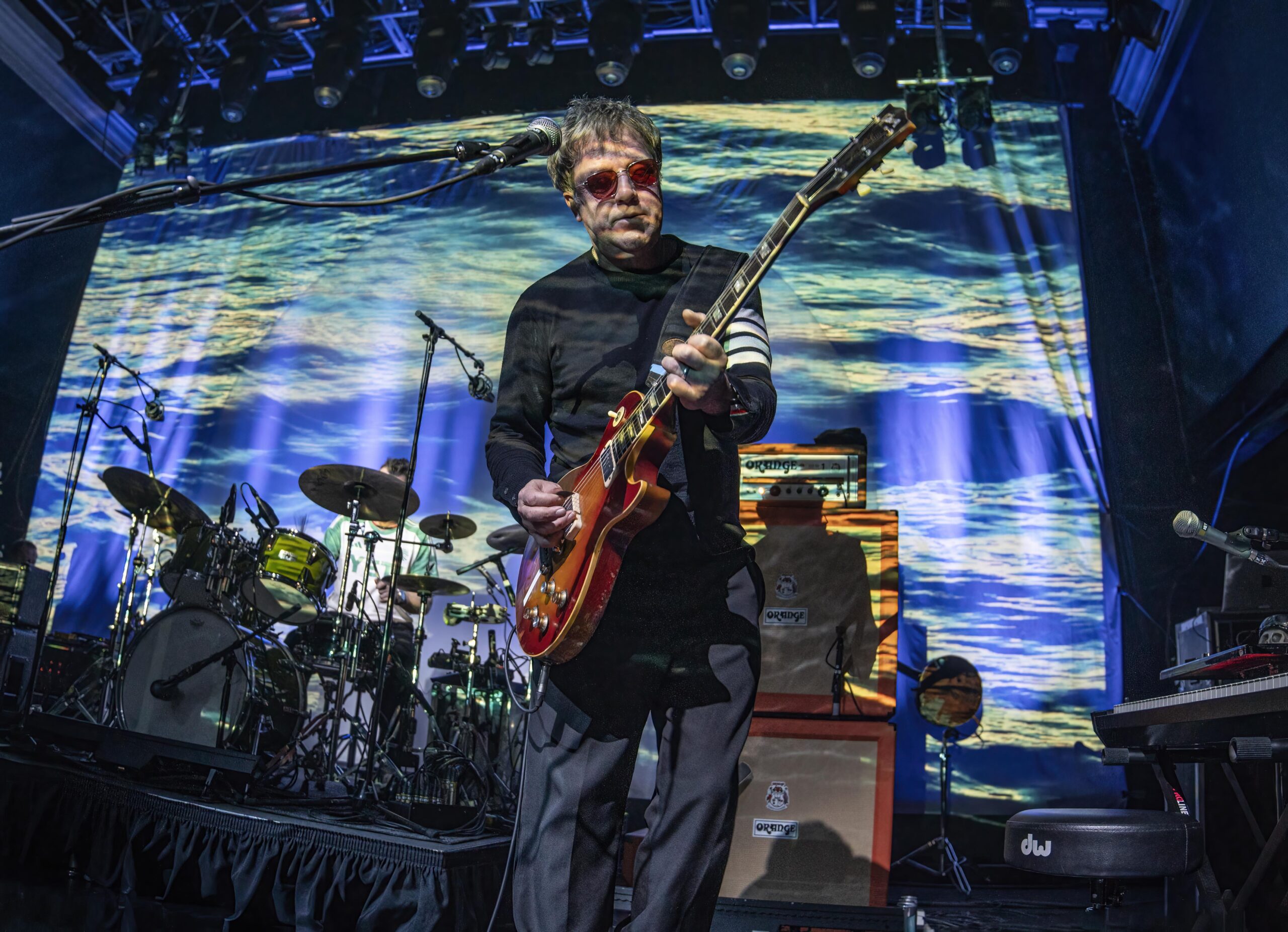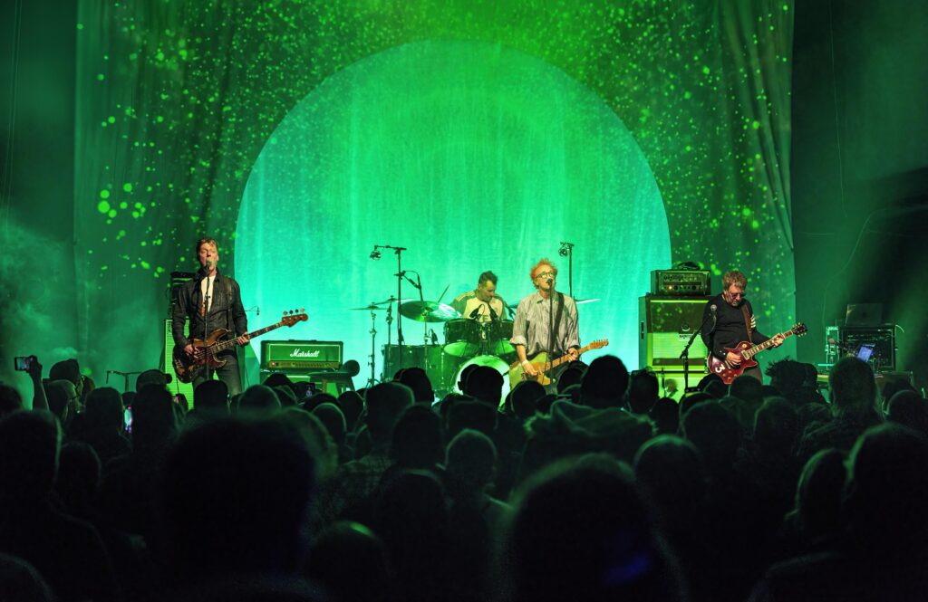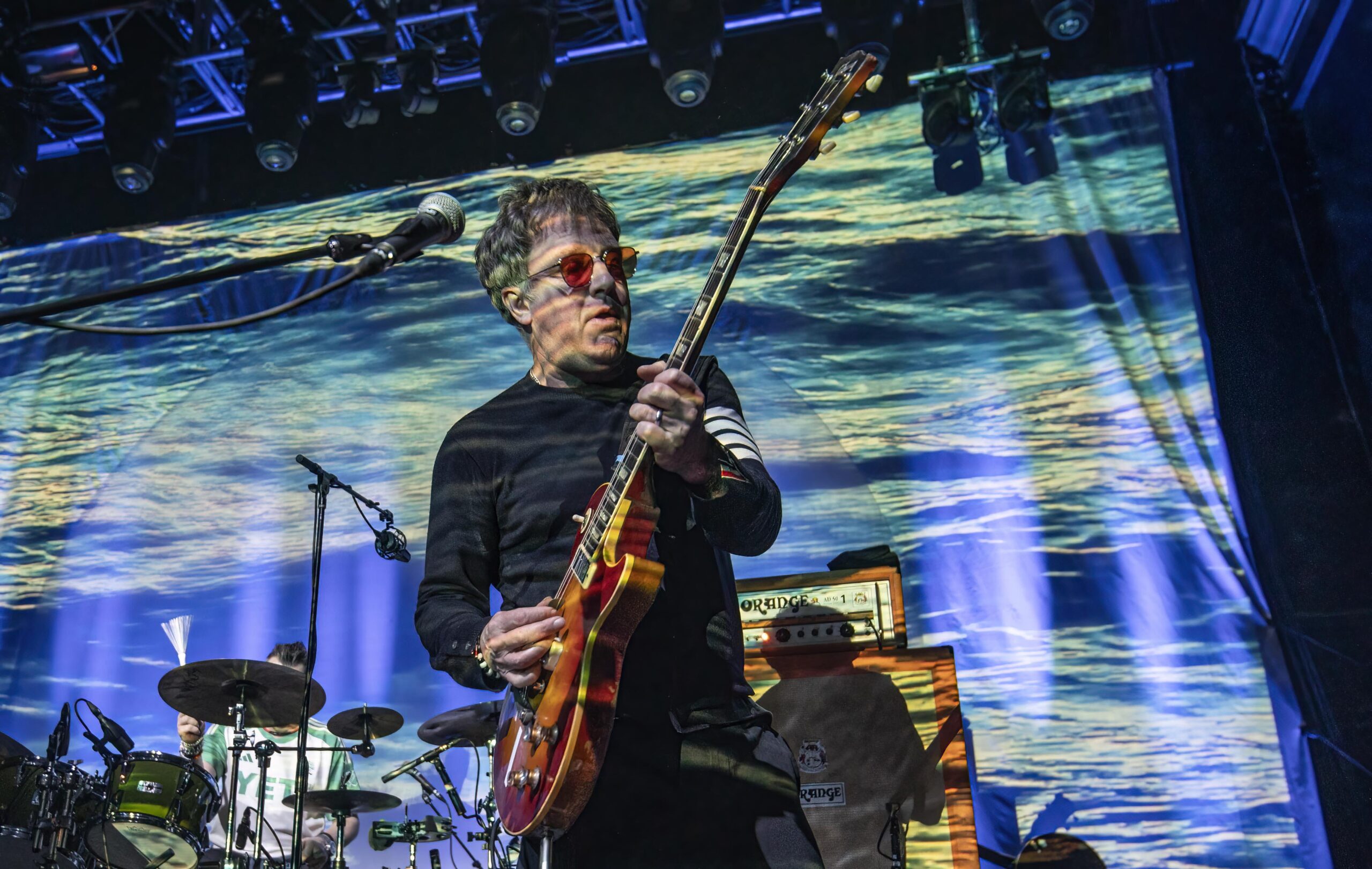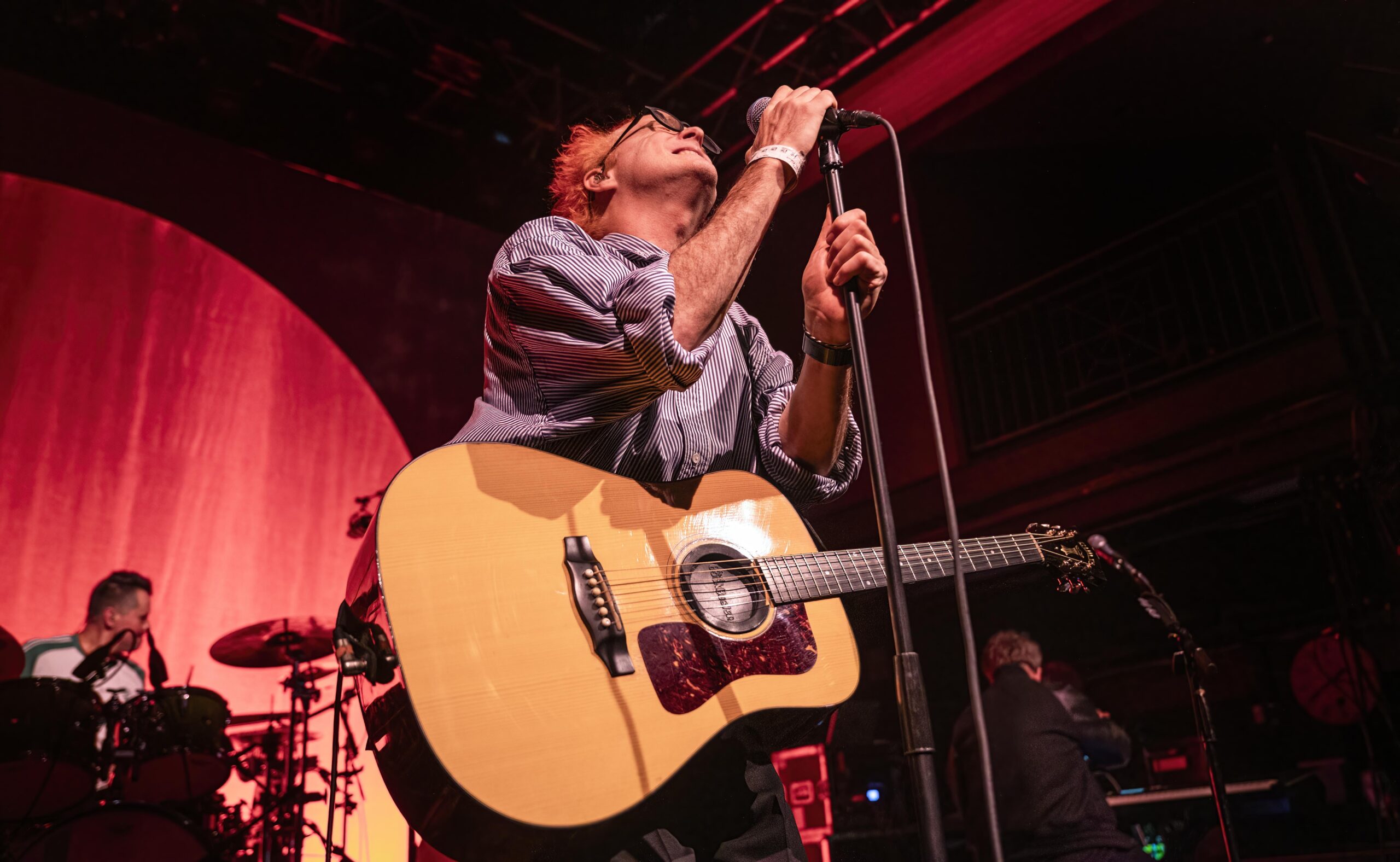 Kicking off (pun not totally intended) the evening, Travis — Healy on guitar/vocals, Dougie Payne on bass, Andy Dunlop on guitar/banjo, and Neil Primose on drums — went right into the new single from LA Times, “Bus,” before bringing out an older tune, “Driftwood” from The Man Who, their sophomore album.