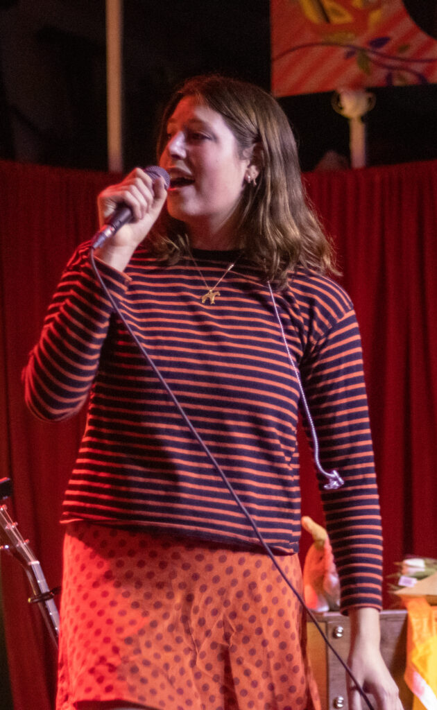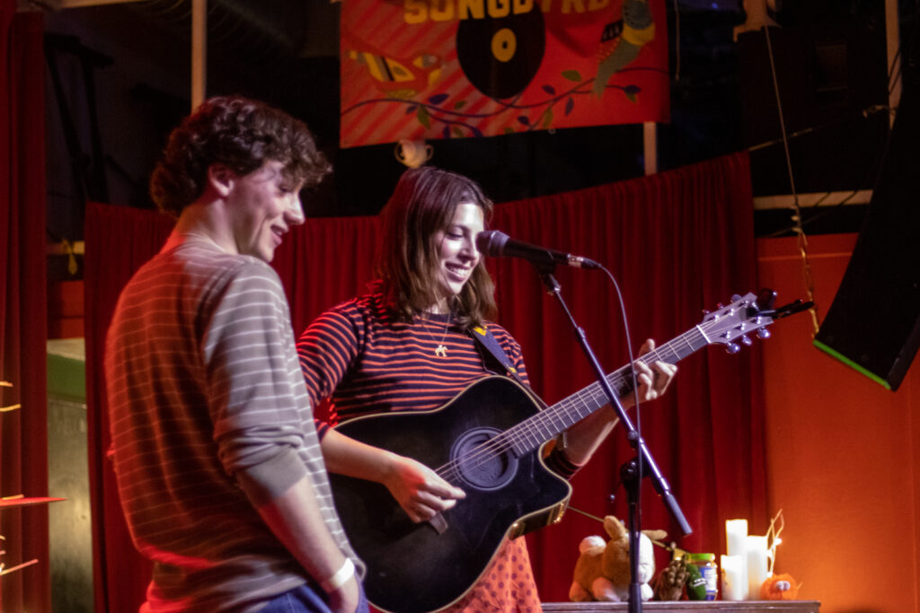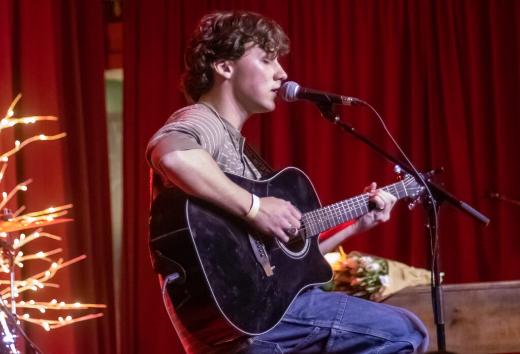Minch’s music often features softly strummed acoustic guitar accompanied by his soft vocals, creating a sound that is both intimate and impactful. His lyrics are noted for their raw honesty, often reflecting on personal experiences and introspective themes. He played a short setlist of his songs, including some about college and friends.