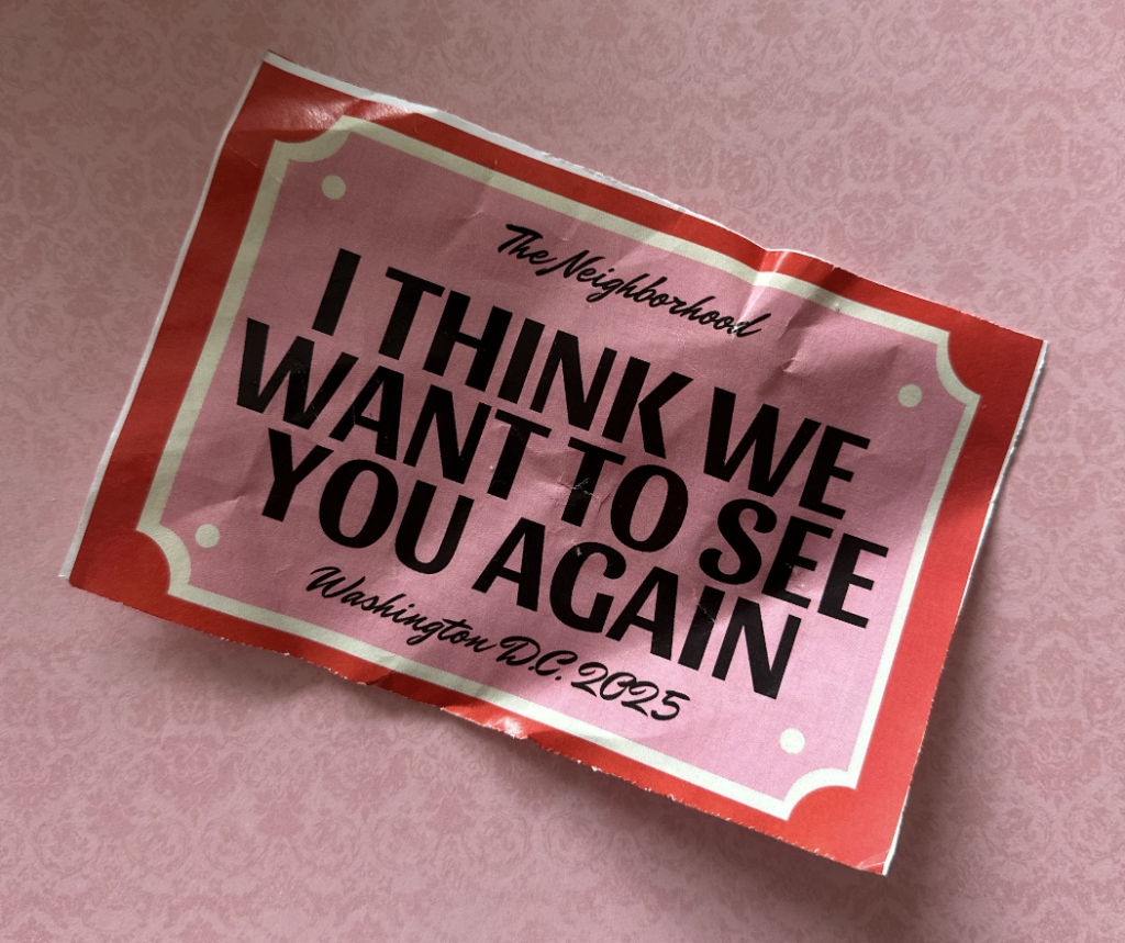 Alongside typical merch of shirts and a tote bag, Enger was collecting donations for a nonprofit that donates menstrual products to those in need. She mentioned, especially in DC, now more than ever we need safe spaces and to be there for one another.