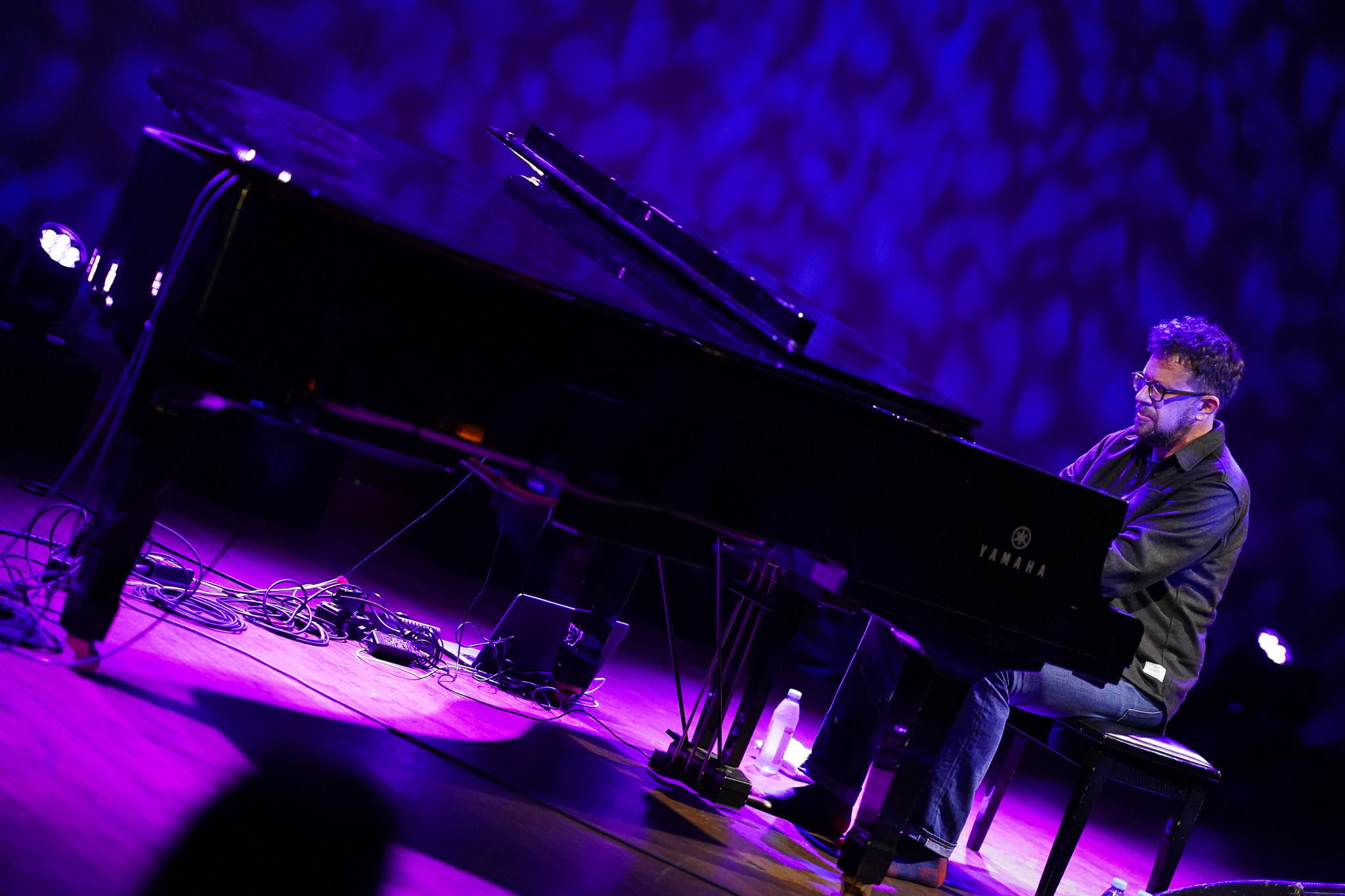 Addressing the audience after opening with a pair of his earlier compositions, Cook explained that the separation was not only hard on him, but his children as well. To heal his own pain, Cook put himself in natural, thought-provoking settings — in the woods, by a river, listening to the birds. In fact, some of the natural calls he heard helped him compose his latest album and are even sampled on some tracks.