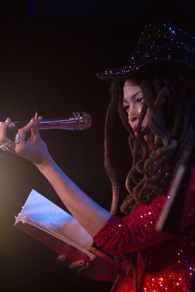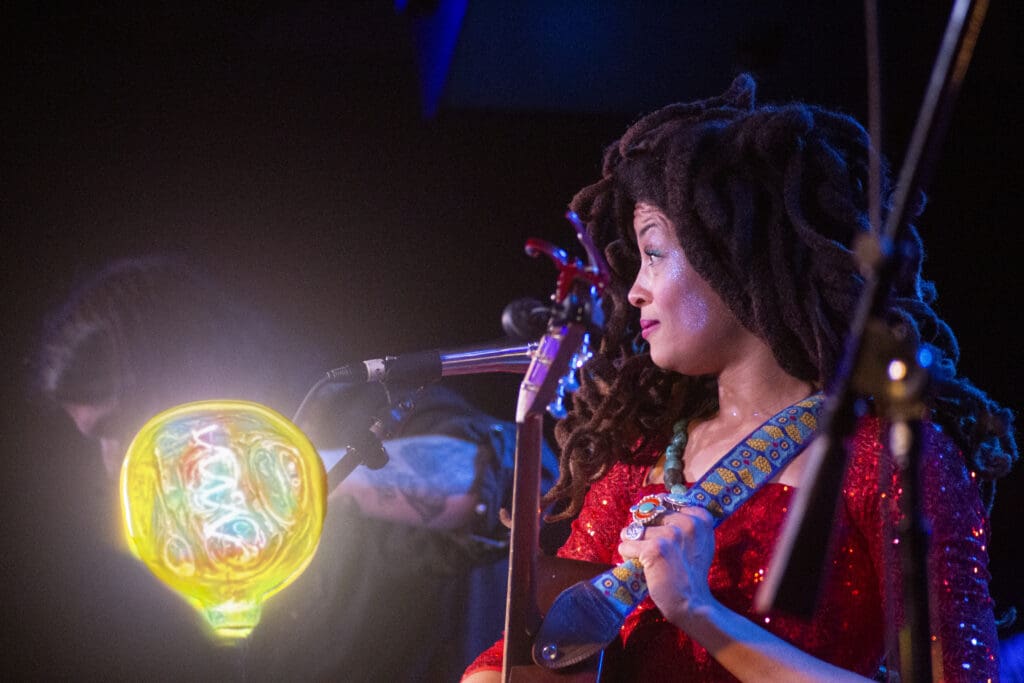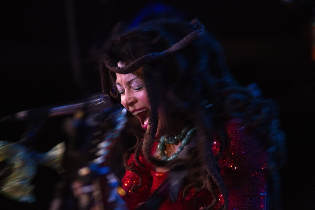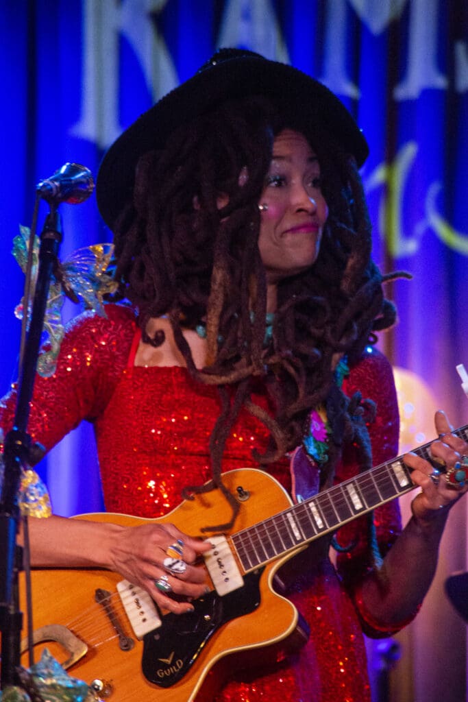When it was time, Valerie drifted on stage like a cosmic ballerina in a red dress made from Dorothy’s ruby red slippers. She’s graceful but from a different dimension. She knows that and has made it her job to pull us all into her beautiful world. If you haven’t heard Valerie’s music, check out her latest single from Owls, Omens & Oracles, “Joy, Joy!”