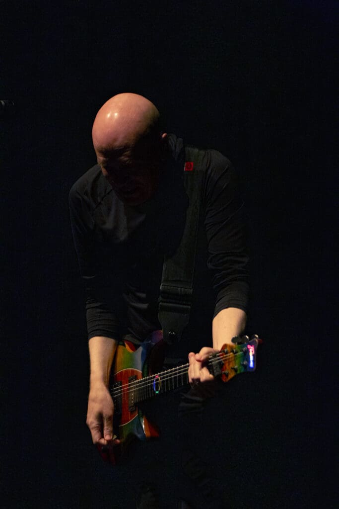 Another highlight was the appearance of Devin’s theremin for the song “Dimensions” from his Lightwork album (2022). He only used it for that song but made a comedy routing of it with Mike Keneally. There was a call and response going between the two with Dev feigning frustration as Mike was winning “the battle.”