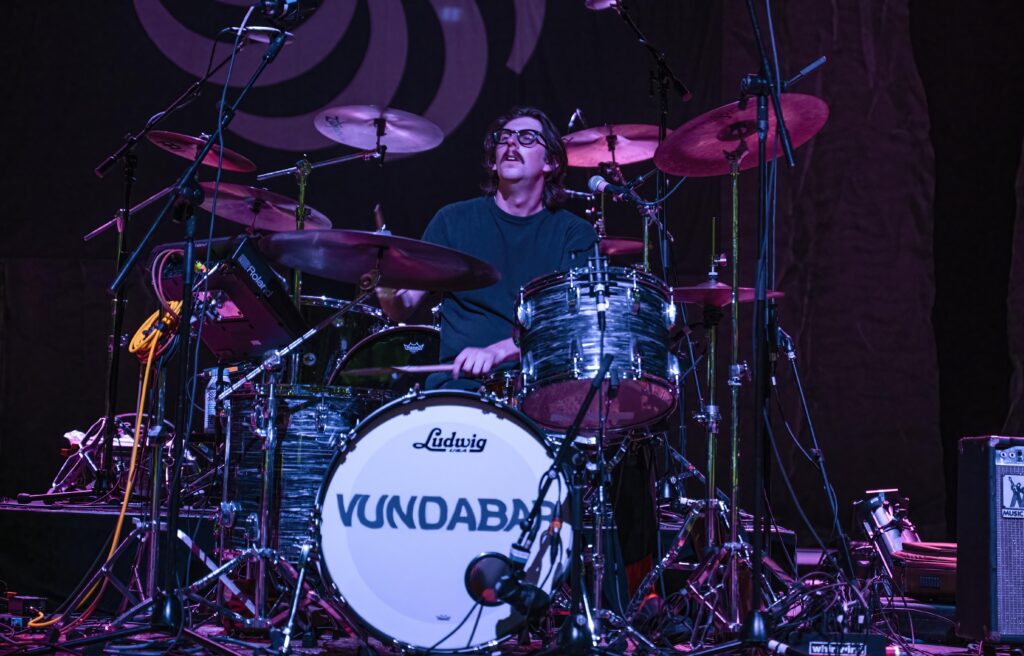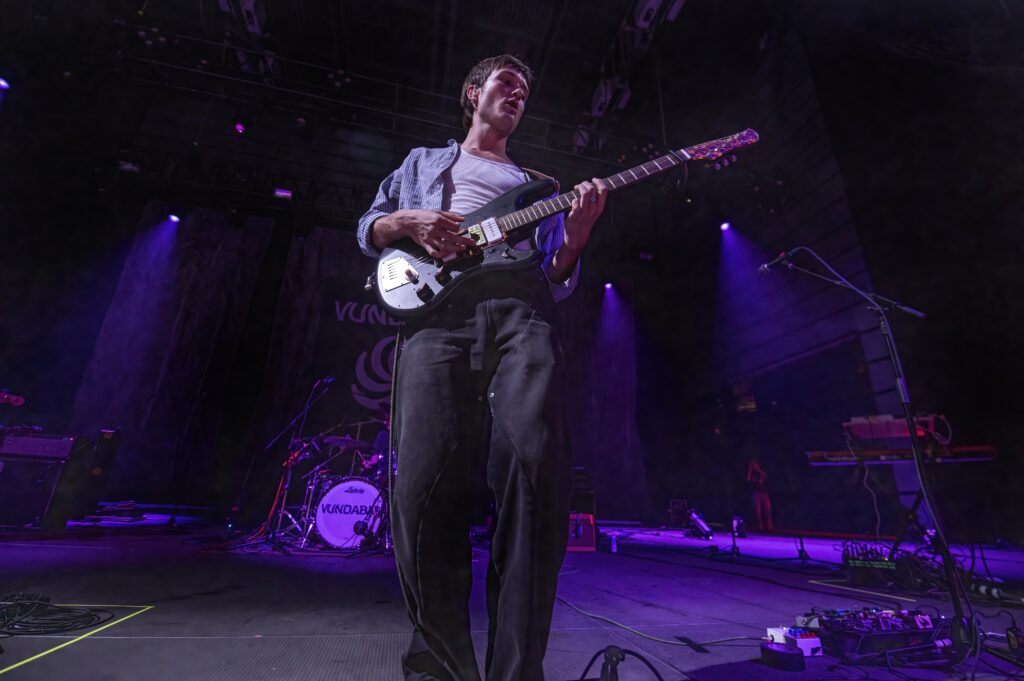 After a brilliant set by the Boston-based three-piece Vundabar, Toledo, Ethan Ives (guitar/vocals), Andrew Katz (drums), and Seth Dalby (bass) with Ben Roth on keyboards took the stage silhouetted against a purple sheet of light.