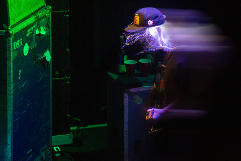 The set began with a quick “Hello” from singer/guitarist J Mascis before launching into “Severed Lips” from their first album, back when they were just known as Dinosaur. J stood in front of a wall of six Marshall cabinets. Lou’s setup was a little bit smaller but a perfect balance to J’s wall of sound. Murph had his drum kit decked out with a drum head from the Where You Been album. It was the beginning of a set filled with Dino Jr. classics as well as some deep cuts that were great to hear!