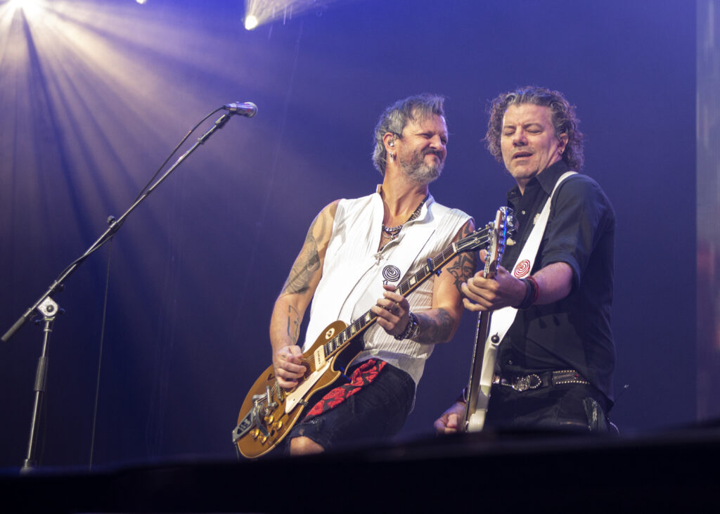 Co-headlining and wrapping up the show was Collective Soul. The kicked off their portion of the evening with “Mother’s Love,” the opening track from their 2024 release, Here To Eternity. Singer Ed Roland sauntered on stage in true rock star fashion in a sparkling, dark grey suit, white cowboy hat, and glass-knobbed cane. Well, the cane didn’t last very long (although it did return later in the set). Three songs later, they lept into their breakthrough, and maybe most well-known song, “Shine,” (Yeah!). And why not? Everyone wants to hear it, they know you HAVE to play it, why make the crowd wait to the end to hear it?