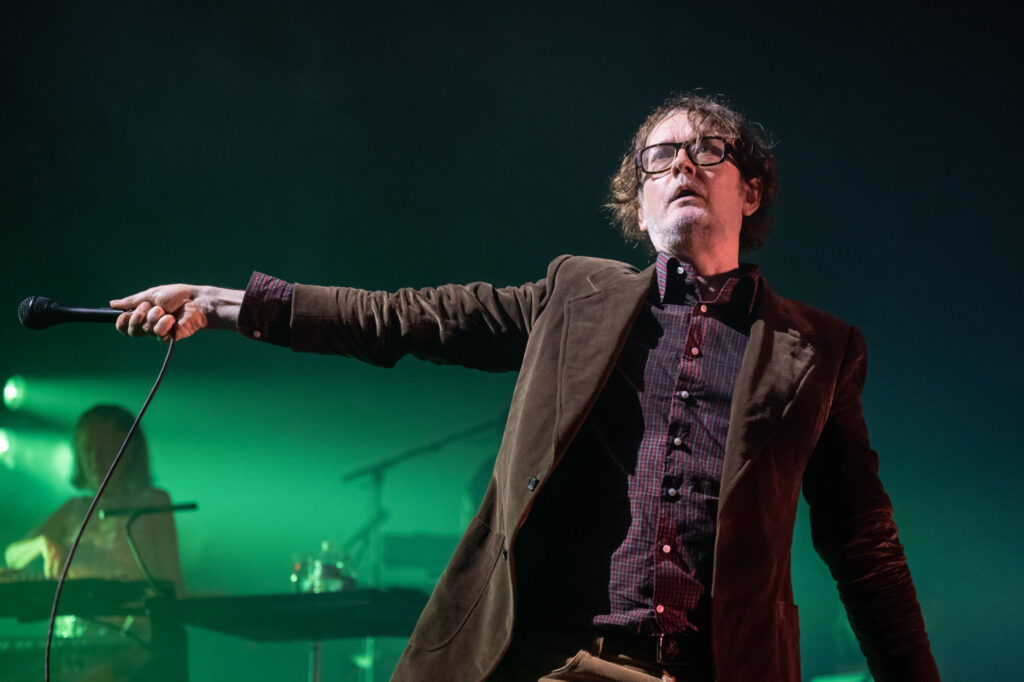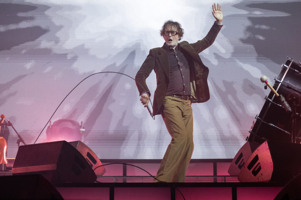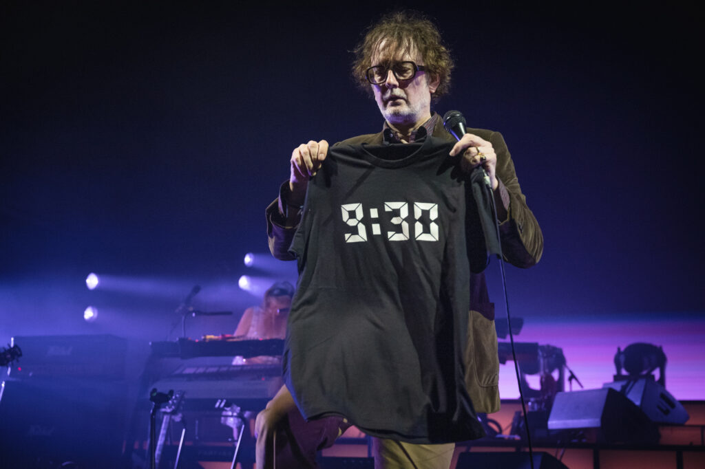 - Jarvis forgot the opening lyrics to “My Sex” and, after a false start, had to get one of the supporting musicians onstage to pull the lyrics up on their phone. Was it a bit? If so, it was still great. Also, he threw grapes and chocolates into the crowd while introducing “Farmers Market.”