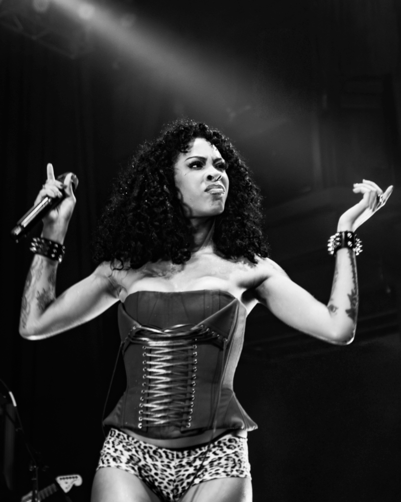 Rico Nasty peers out into the crowd as she rocks the stage at The Fillmore Silver Spring on Oct. 18, 2025. (Photo by AJ Waugh)