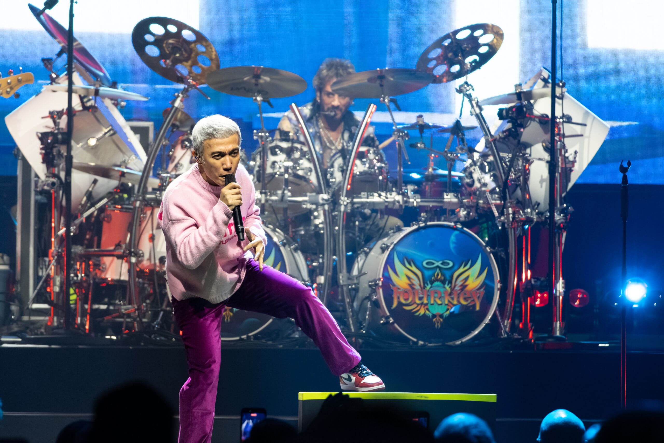Taking over vocals, Arnel Pineda, who was discovered by Schon on YouTube, joined the band in 2007. Nearly two decades into his tenure, Pineda’s vocal talent is the reason Journey can still pack massive arenas. Bounding out on stage in a fuzzy pink sweatshirt and shimmering velvet purple pants, his energy was infectious. Vocally, Pineda handled the heaviest load of the night impressively, wailing out on songs like “Stone in Love” and “Open Arms.” He has impressively tackled the band’s most memorable hits, giving them the honor they deserve while fully taking command of the arena himself.