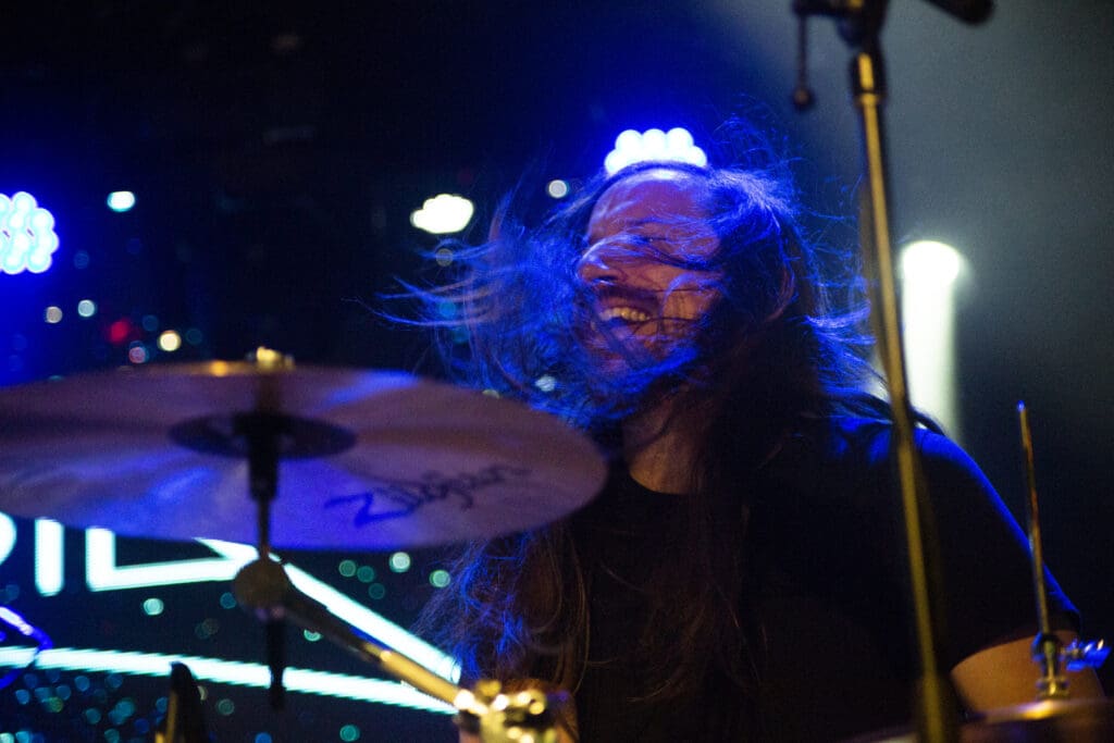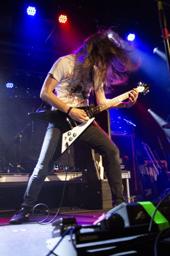 Their sound is cinematic, high energy metal. The five-piece ripped into Detachment from their first EP, Stargazer. It was all headbanging, all the time after that, done particularly well by guitarist Casey Aylward. Singer/guitarist Brett Boland was right behind, alternating between singing and head banging. And I can’t write about this show without mentioning that drummer Dan Schwartz is the happiest drummer I have ever covered. Ever. He was smiling ear to ear all set.