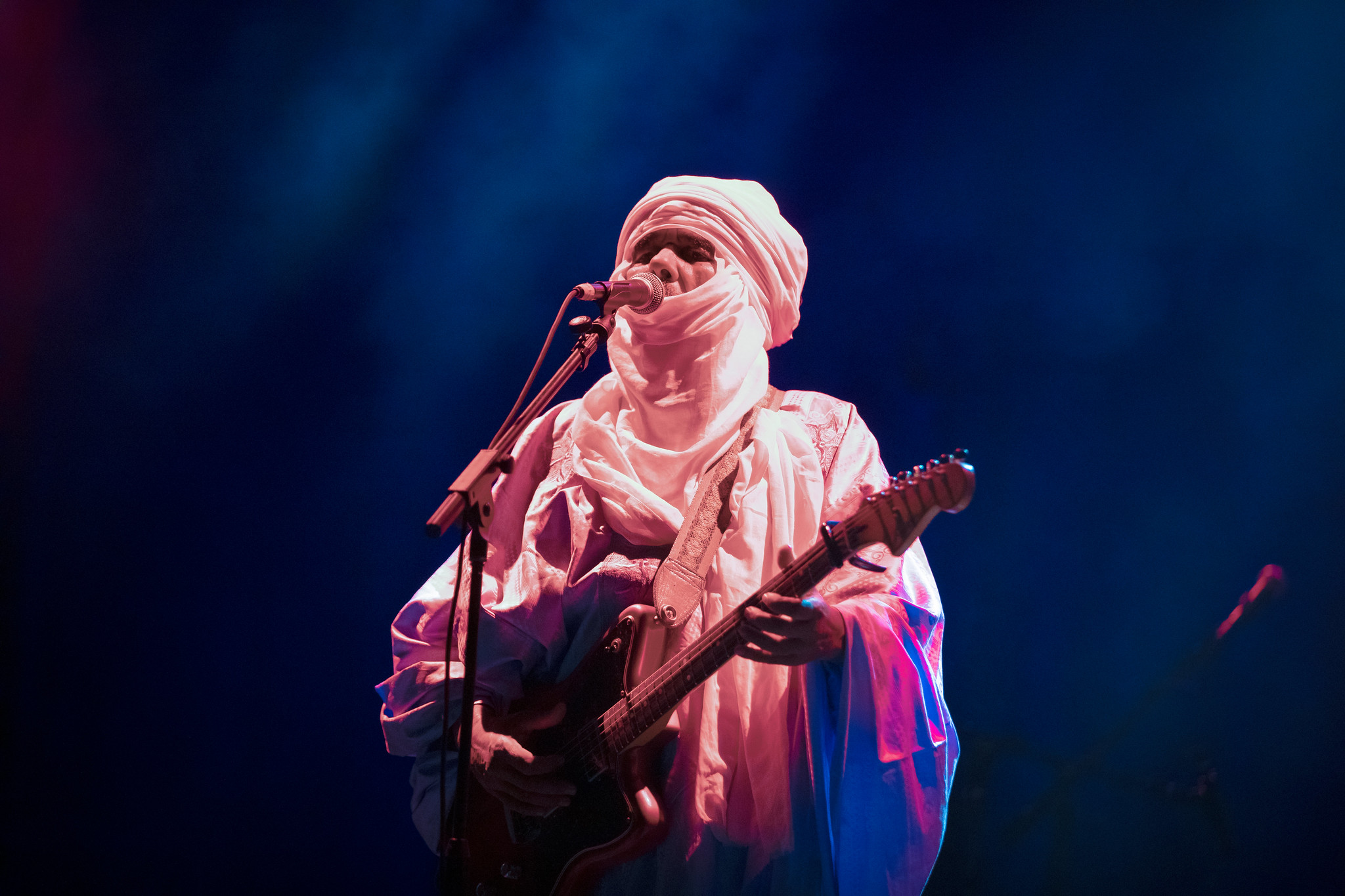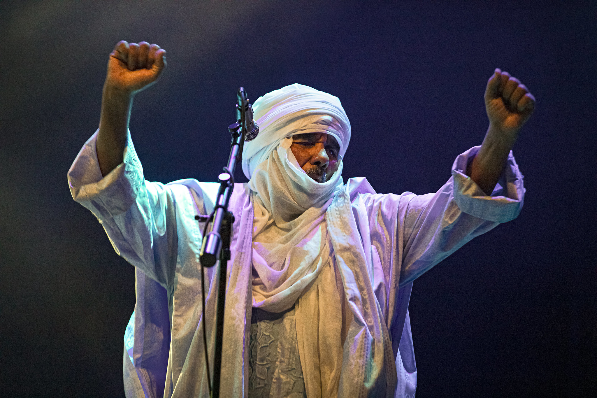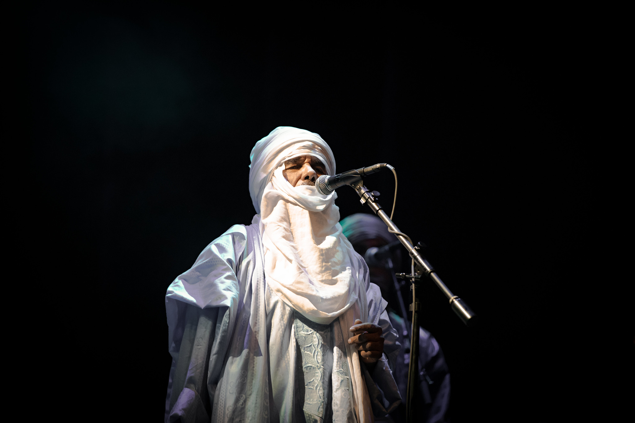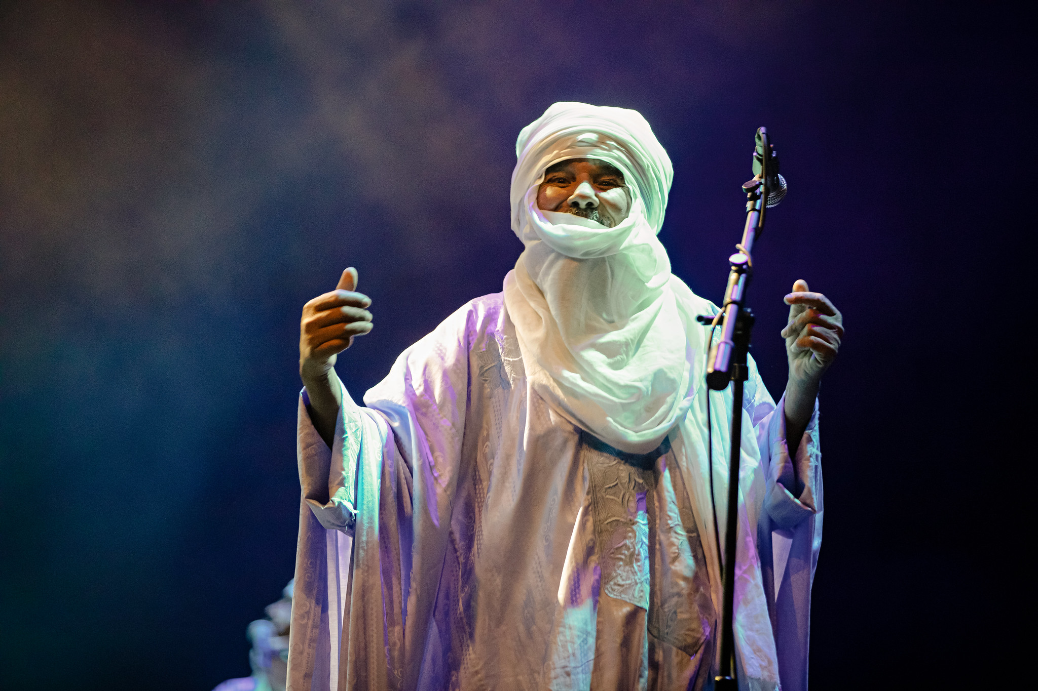 Successful relationships often thrive when they bring together individuals with different personality types. U2 provides an example, with Bono’s energetic and captivating stage presence balanced by The Edge’s reserved demeanor. Touhami Ag Alhassane took on the role of the charismatic frontman during this performance, inspiring the audience to let loose, while other members, like Ibrahim Ag Alhabib maintained a more stoic presence.