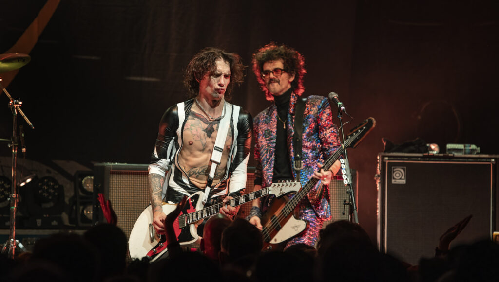 In 2021, Justin Hawkins, lead singer / guitarist of The Darkness, started a podcast, titled “Justin Hawkins Rides Again,” where he comments on new music or artists. During one recent video, Hawkins waxed on about this band, Paris Monster, saying at one point they should be taking over the entire world. So, I was already keen on seeing them open for The Darkness at 9:30 Club on Oct. 22, but they were better than I expected (see what I mean about expectations?). The two-piece, unassumingly took the stage at the 9:30 Club but immediately won me over. I have to admit being in a bit of a ruffled mood before the show started but after a handful of songs I was smiling along with the rest of the packed venue.