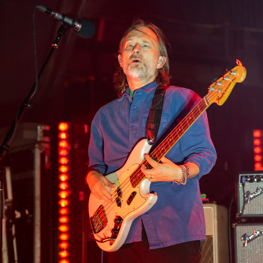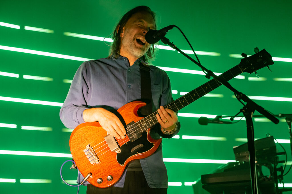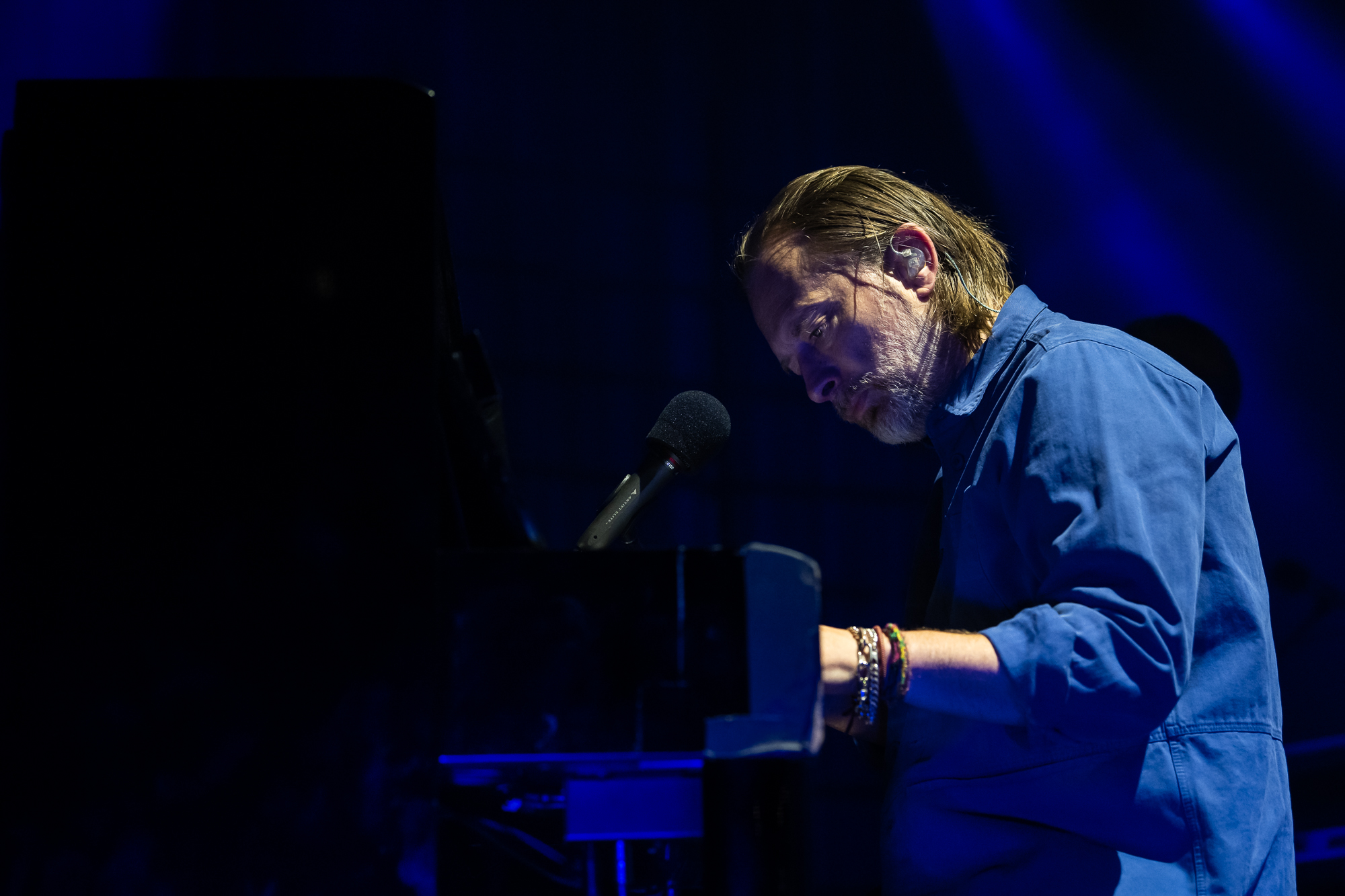 The Smile took the stage promptly at 9pm after a short set from multi-instrumentalist Robert Stillman and started the night with “Pana-Vision,” a slow-building tune that features Yorke on piano, Greenwood on bass, Skinner on drums, and Stillman on saxophone. The set quickly picked up speed with the math-rock influenced “Thin Thing” followed by the stomping “The Opposite.” Yorke and Greenwood switched back and forth between guitar and bass all night, while also taking their occasional turn on piano and synthesizer. Their crew worked like a racing pit crew switching out instruments and moving gear around the stage after each song. It was fun to watch.