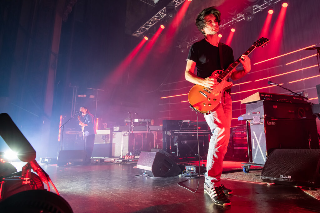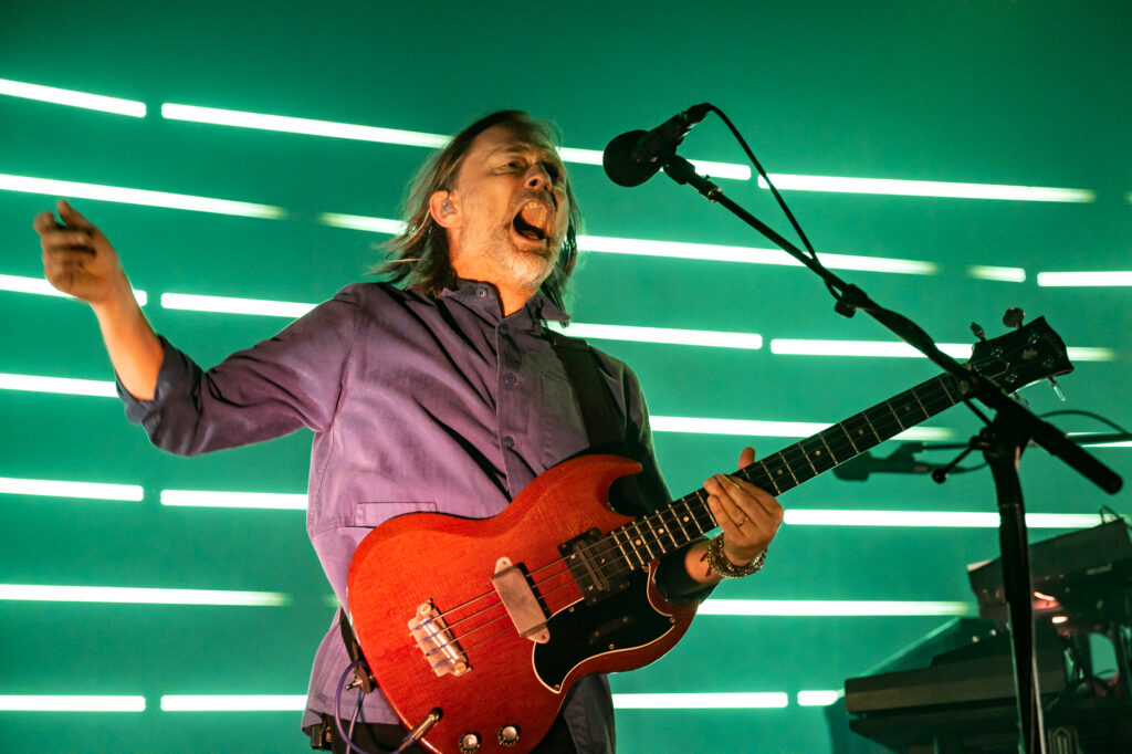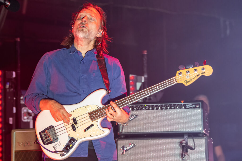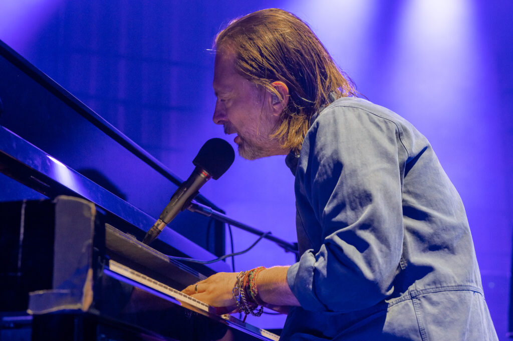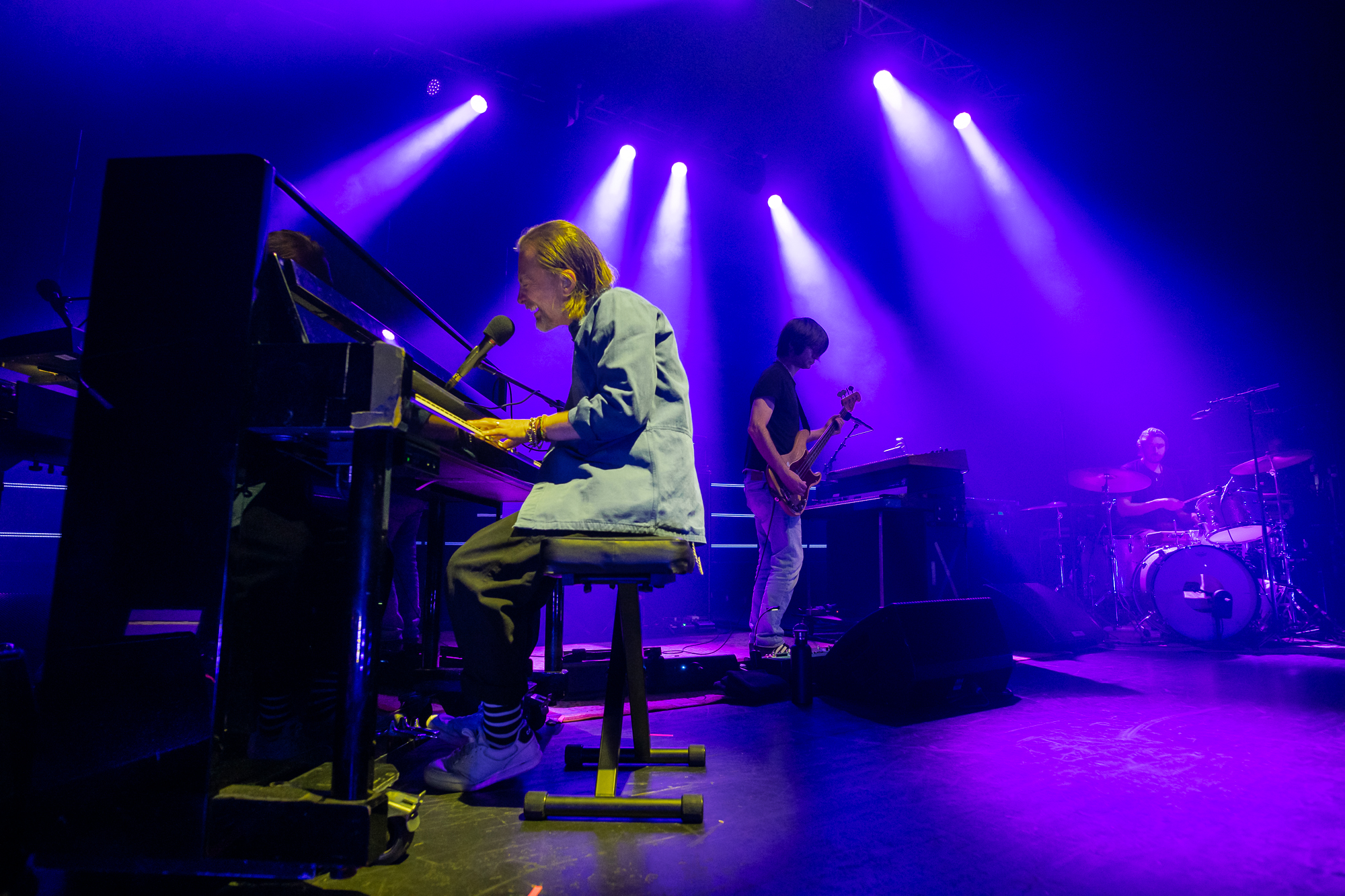 The Smile took the stage promptly at 9pm after a short set from multi-instrumentalist Robert Stillman and started the night with “Pana-Vision,” a slow-building tune that features Yorke on piano, Greenwood on bass, Skinner on drums, and Stillman on saxophone. The set quickly picked up speed with the math-rock influenced “Thin Thing” followed by the stomping “The Opposite.” Yorke and Greenwood switched back and forth between guitar and bass all night, while also taking their occasional turn on piano and synthesizer. Their crew worked like a racing pit crew switching out instruments and moving gear around the stage after each song. It was fun to watch.